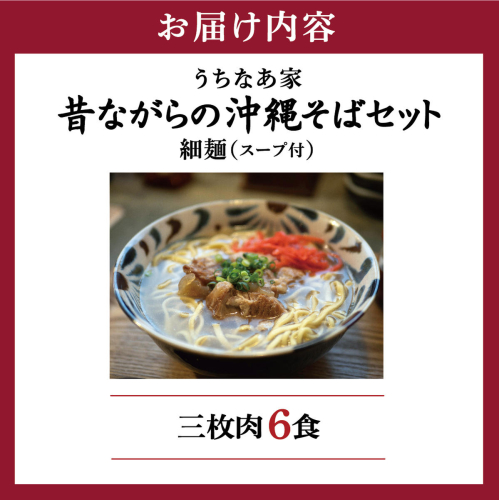 うちなあ家 昔ながらの沖縄そば 細麺 三枚肉 6食入り I 沖縄そば 細麺 三枚肉 セット 6食 そば 麺 沖縄県 南城市 ふるさと納税 沖縄そば うちなあ家
