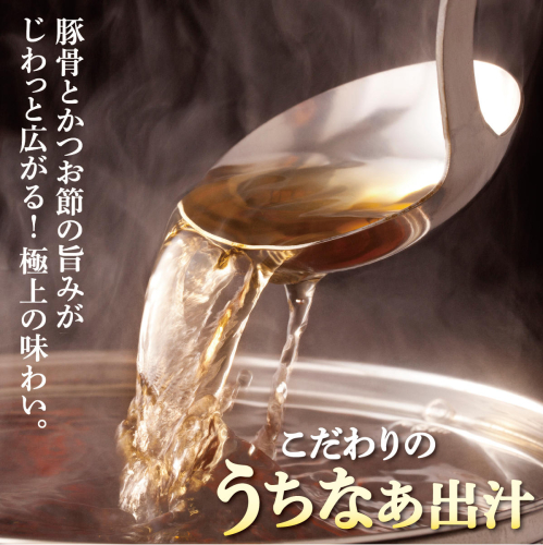 お店でじっくりと煮出した豚骨スープにかつお節と塩で仕上げた、あっさりとしながらも旨みたっぷりのうちなあ出汁。
