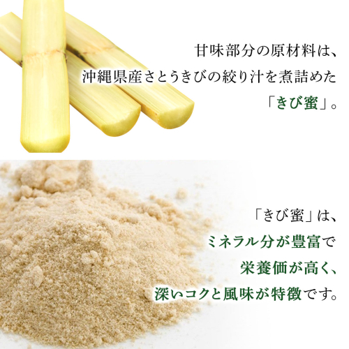 搾り方に拘った沖縄県産シークワーサー果汁と香りがよくほのかに甘い地酒泡盛、沖縄県産サトウキビを煮詰めた深いコクと風味が特徴のきび蜜を使用しています。