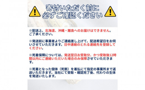 ※死着保障については、発送翌日お受取分、かつ受取後12時間以内にご連絡いただいた場合のみ保障させていただきます。