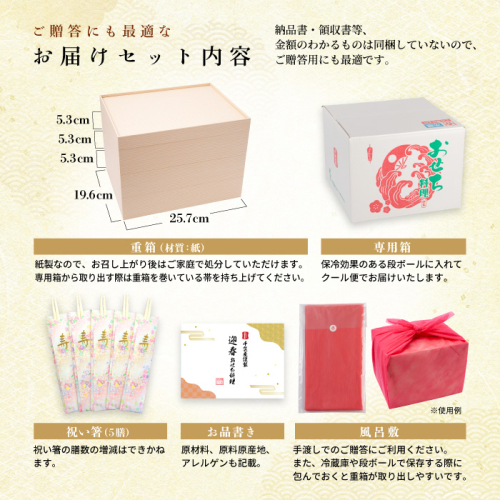[同梱物]お品書き・風呂敷(朱)・祝い箸5膳