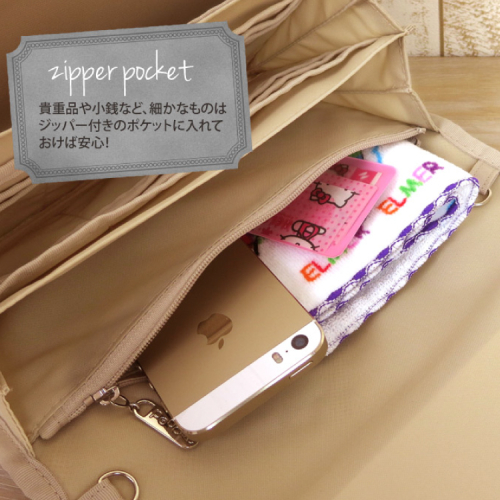 背面にも収納ポケットを設けていますので、スマートフォンやハンカチなど、すぐに出したいものを収納する際に重宝します。