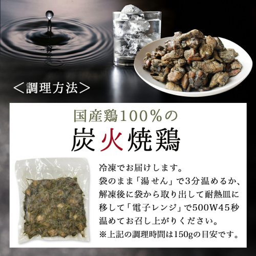 【☆お歳暮ギフト☆対象品】 余計なものは使わない。 一般的によくあるレトルト品と違い、栗山ノーサンの炭火焼鶏はすべて職人が”手焼き”しています。 厳選した国産の鶏肉を使用し、国産の木炭で焼き上げた一品です。 味付けはシンプルに塩のみ!焼きたてを急速冷凍することで旨み成分をぎゅっと閉じ込めました。 保存料や着色料は一切使用しておりません。 こちらは湯せんするだけで召し上がっていただけます。 都城焼酎との相性も抜群◎本場の味をぜひご自宅でご賞味ください。 【決済について】 ・2025年11月30日(日)までのオンライン決済限定です。 【お届け先について】 ・贈り主は寄附者様のお名前でお届けします。(※お届け先と寄附者様のお名前が異なる場合のみ) ・お申し込みの際は、配送情報の入力にご注意ください。
