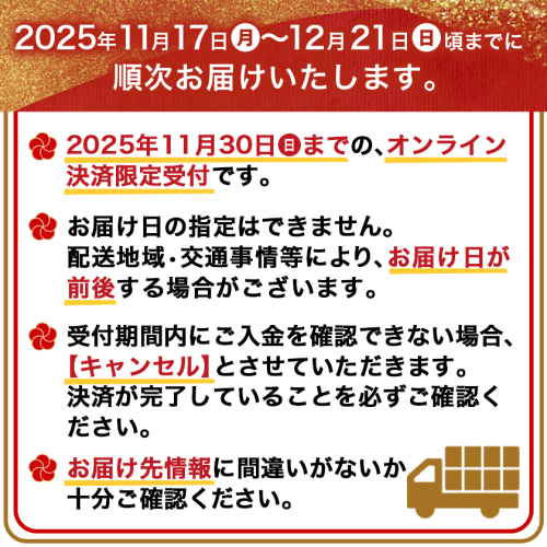・2025年11月17日(月)~12月21日(日)頃までに順次お届けいたします。