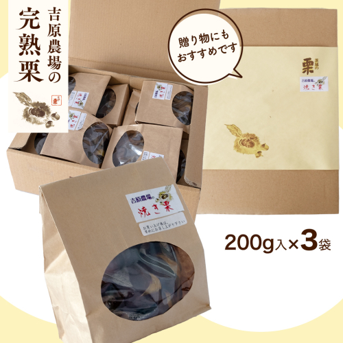- 【 吉原農場 の 完熟栗 】 熟成 焼き栗 3袋 ( 200g × 3袋 ) R7年産 完熟 栗 くり クリ 栗ごはん 贈答 ギフト 果物 フルーツ 数量限定 旬 秋 冬 正月 おせち [CX020ci]
