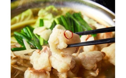 近江牛小腸300g、ホルモン屋が作った本気のもつ鍋スープ塩味1回分 150g、〆の麵、美味しいもつ鍋の作り方