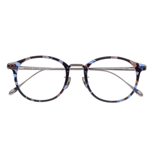 アセテートパーツとブリッジ等のチタン金属パーツを留める『カシメ』と呼ばれる技法は、100年の歴史を誇る鯖江のファクトリー、株式会社三工光学の中にあって一人の職人にしかできない巧の技でございます。