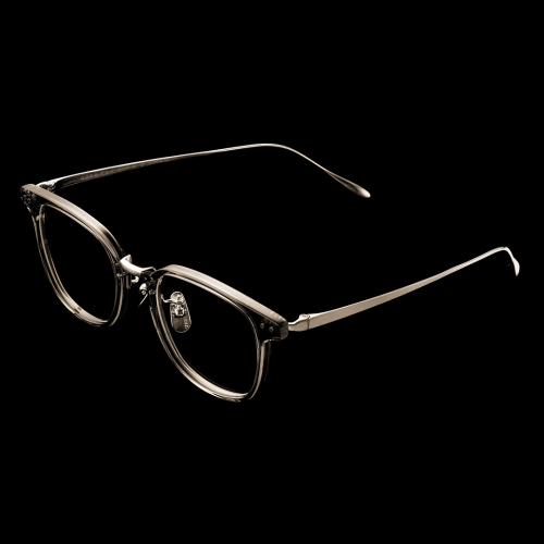 アセテートパーツとブリッジ等のチタン金属パーツを留める『カシメ』と呼ばれる技法は、100年の歴史を誇る鯖江のファクトリー、株式会社三工光学の中にあって一人の職人にしかできない巧の技でございます。