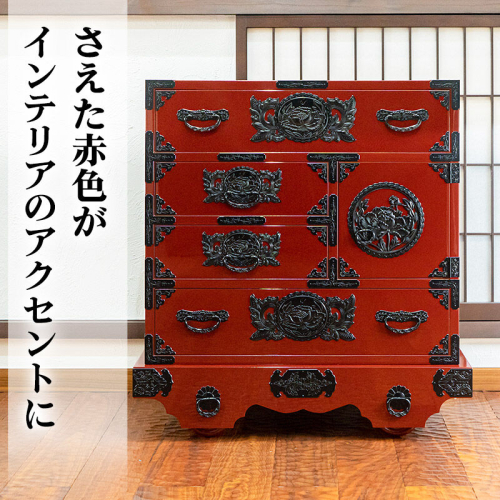 - 仙台箪笥 中型車箪笥 朱色漆塗り KEB-18 (お申込書返送後3ヶ月~8ヶ月以内でお届け) 欅産業 職人 おすすめ 船箪笥 [インテリア タンス 収納 家具 和 モダン 高級 和箪笥 小箪笥 伝統 工芸品 仏壇 仏具 神具 飾り棚 欅 漆塗 彫金 金具 装飾 仙台箪笥 船箪笥 舟箪笥 宮城 利府 欅産業]