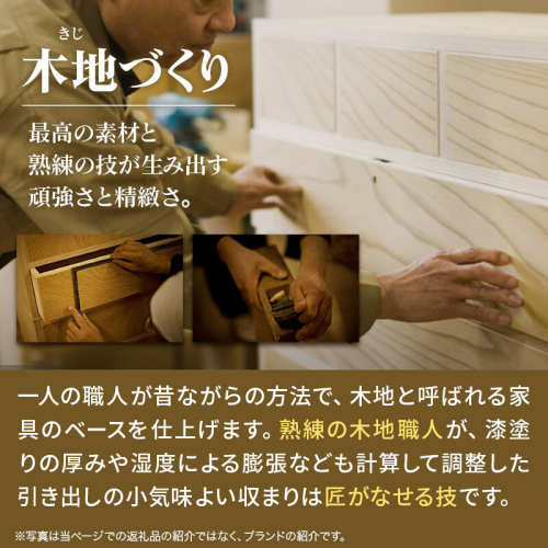 ■地場産品に該当する理由:宮城県の伝統工芸品である仙台箪笥を町内にて企画・デザイン、組み立て、金具装着、磨き、最終仕上げまでの全ての工程を行っている。