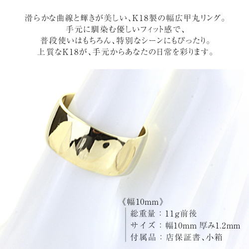 k18製 幅広の甲丸リング (幅10mm) フォーマル 冠婚葬祭 結婚式 ゴールド 甲丸 リング 指輪 アクセサリー シンプル 18金 金 ギフト 記念 贈り物 贈答用 アクセサリー ジュエリー ジュエリーマーノ 桜川市 [AH164sa] 2141325 - 茨城県桜川市