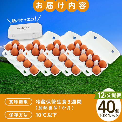 【12か月連続お届け】眠れる森のたまご 朝採れ卵40個 たまご タマゴ 卵 鶏卵 濃厚 こだわり 新鮮 定期便 【04301-0799】