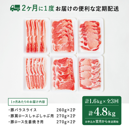 【定期便:2ヶ月に1度】鹿児島産 豚肉3種類セット 1.6kg×3回(合計4.8kg) 国産 鹿児島県産 豚肉 お取り寄せ かごしま グルメ 鍋 送料無料 鹿児島県 南さつま市 株式会社コワダヤ
