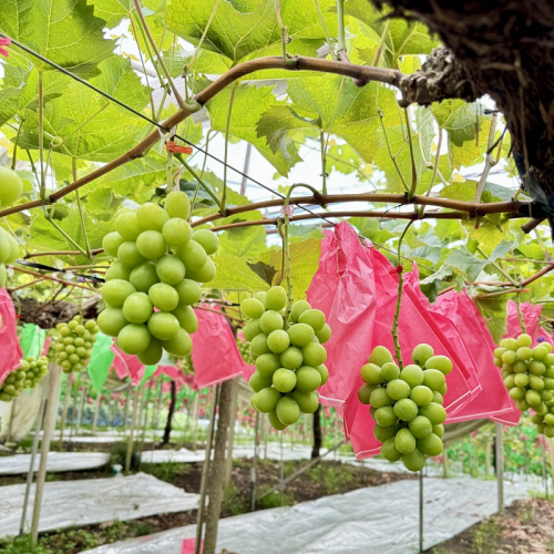 Nini farmで栽培された、皮ごと食べれて甘くて美味しい、大人気のシャインマスカット。