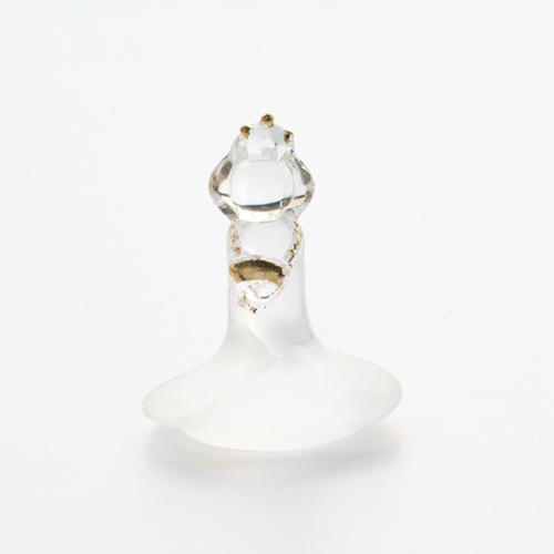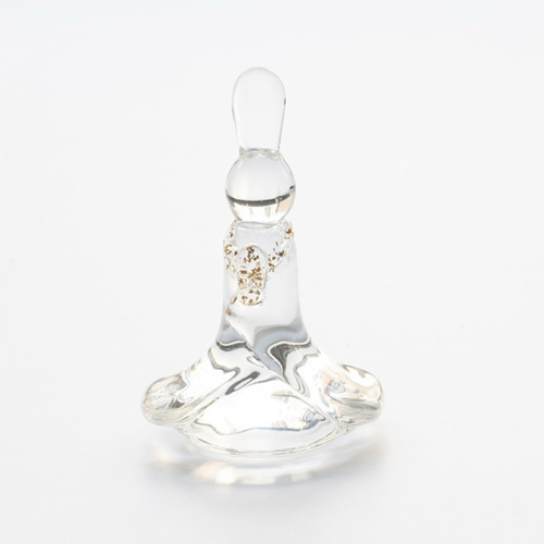 ところどころに金箔を加飾しているほか、お雛さまの着物にはフロスト加工を施し、クリアなガラスとの質感の違いもお楽しみいただけます。