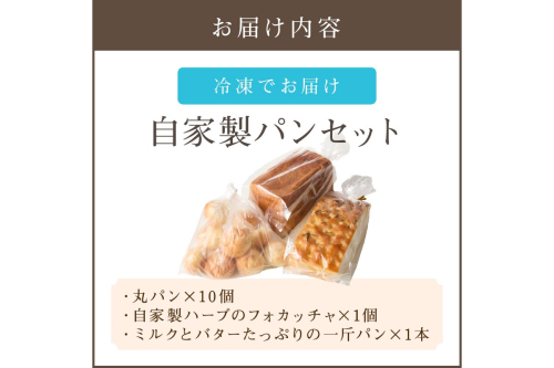 【丸パン】 お食事用で、素朴な味わいのパンです。 【自家製ハーブのフォカッチャ】 自家栽培のローズマリーで焼き上げました。 【ミルクとバターたっぷりの一斤パン】 ミルクとバターたっぷりのパンです。 何もつけず、初めはそのまま焼いてお召し上がり下さい。 ミルクとバターが食欲を引き立てます。 全て手ごね仕込みの無添加です。 ※画像はイメージです。 ※返送となった場合、再送はいたしません。 ※着日(曜日含)の指定はできません。予めご了承の上、お申し込みください。 ※保存は冷凍をお勧めします。 保存方法: 冷凍 地場産品類型番号|理由: 3|製造工程のうち、ミキシングから完成までの工程を職人の手で一つ一つ行うことで、本工程による付加価値は返礼品の過半を占めている。
