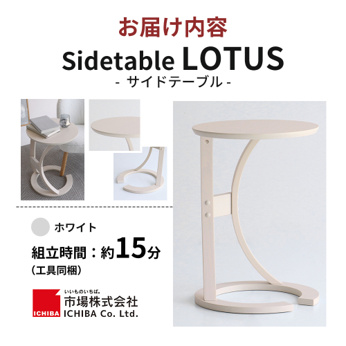 サイドテーブル ロータス ホワイト 防災 新生活 木製 一人暮らし 買い替え インテリア おしゃれ 机 デスク 家具 サイドテーブル ローテーブル デスク 机 テーブル 市場家具 いちば イチバ ICHIBA koti市場 株式会社