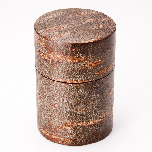 【樹皮の素朴な表情をそのまま活かしたチラシ皮の茶筒】