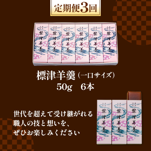 ふるさと納税 北海道 中標津町 中標津 定期便 全3回 標津羊羹 一口サイズ50g×6本 羊羹 羊かん 標津羊羹 和菓子 お茶菓子 ようかん 金時豆 てんさい糖 ビート糖 スイーツ ひと口 お取り寄せ ギフト お土産