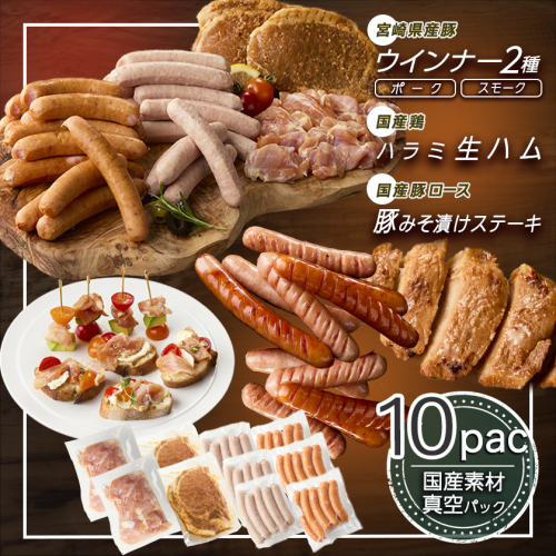 2種のウインナー&若鶏生ハム&豚みそ漬のバラエティセット【真空10パック】_12-L903