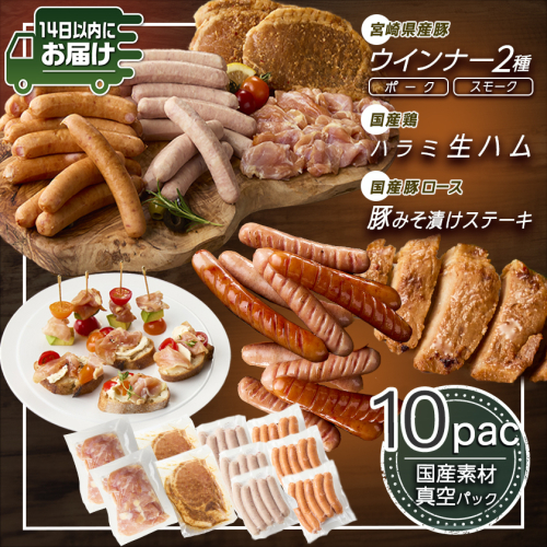 2種のウインナー&若鶏生ハム&豚みそ漬のバラエティセット【真空10パック】≪みやこんじょ快速便≫_12-L903-R
