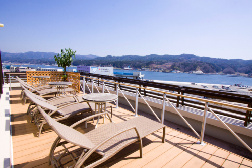気仙沼の港を見渡せる展望風呂はゆったりと寛げ身も心も温めてくれます。