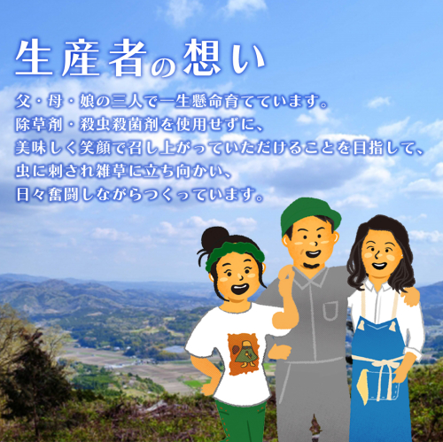 除草剤・殺虫殺菌剤を使用せずに、美味しく笑顔で召し上がっていただけることを目指して、