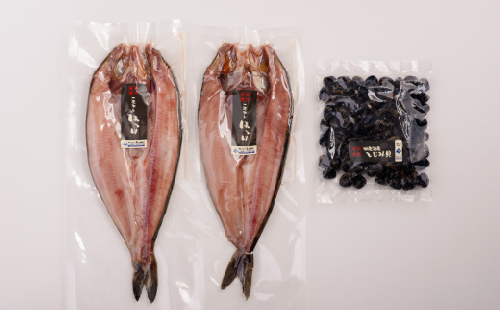 良質なホッケを開いてから適度な塩水に漬け込み一晩かけて干した風味豊かな干物と網走湖名産のしじみを詰め合わせにしました。