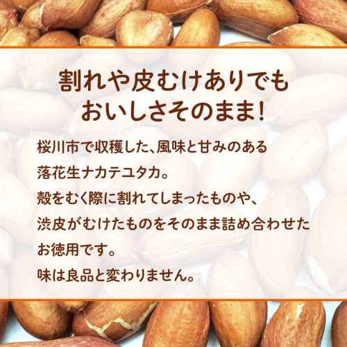 落花生の殻を剥くときに、多少渋皮が剥けてしまったものを、お得に袋詰めしました。