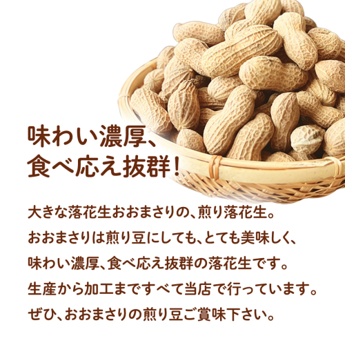 おおまさりは煎り豆にしても、とても美味しく、味わい濃厚、食べ応え抜群の落花生です。