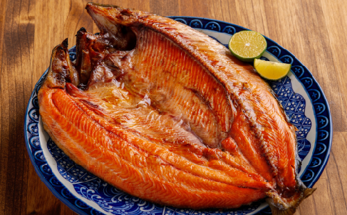 「桜ます一夜干し」は、良質な桜ますを開いてから適度な塩水に漬け込み一晩かけて干した風味豊かな干物です。