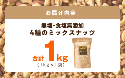 - 【無塩&無添加】4種のミックスナッツ 1kg【アーモンド くるみ カシューナッツ マカダミア 素焼き 真空パック 低温ロースト おつまみ】 010B1712