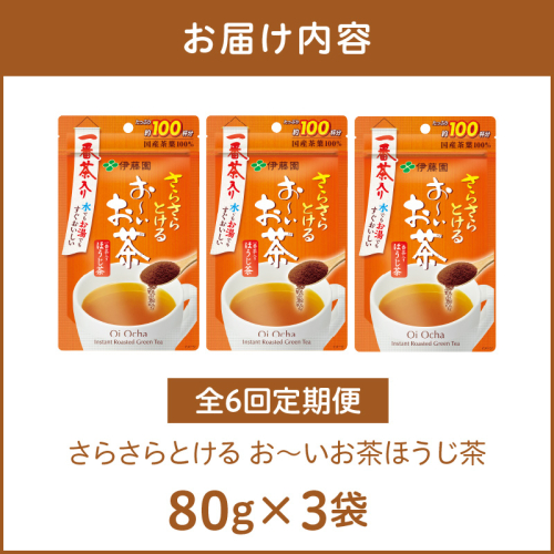 【6ヶ月定期便】さらさらとける お~いお茶ほうじ茶80g(3袋)[091I14-T]