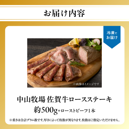 - 【最速配送】佐賀牛ロースステーキ 500g + 佐賀牛ローストビーフ 1本 / 中山牧場 直送 牛肉 佐賀牛 霜降り ロース ステーキ 厚切り 焼肉 バーベキュー A4 A5 a4 a5 黒毛和牛 佐賀県産和牛 ブランド牛 肉 お肉 国産 佐賀県 玄海町 冷凍 人気 おすすめ