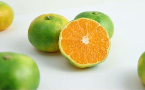 ゆら早生みかんは、果皮が青く残っているうちに収穫するので酸っぱそうに見えますが、中身は十分熟しています。