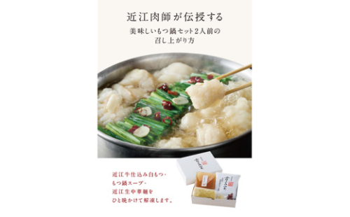 - もつ300g・もつ鍋スープ650g・近江中華麺60g×2袋・にんにくスライス・鷹の爪