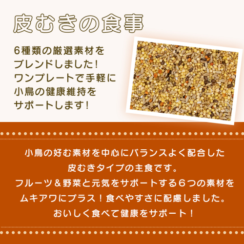 小鳥の好む素材を中心にバランスよく配合した皮むきタイプの主食!