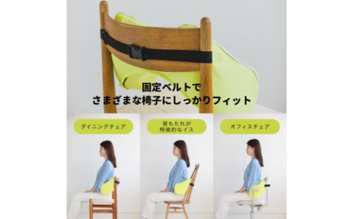 ■固定ベルトでいつもの椅子にしっかりフィット。同シリーズの「お尻のまくら」とのセット使用で、骨ポジションがさらに安定します。