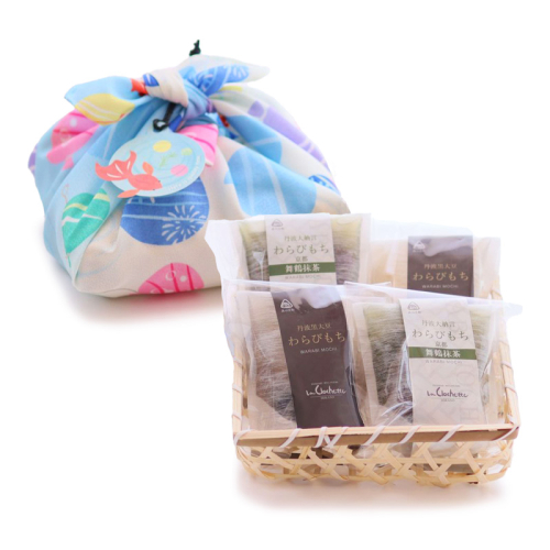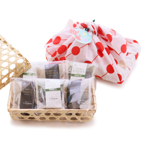 ・風呂敷に竹籠の組み合わせが夏の手土産にぴったりです。わらび餅の包装がお皿になり、スプーンも個別でついているので便利です。オフィスにお持ちしても楽しんでいただけそうです。(製造業 秘書歴2年9ヶ月)