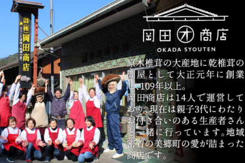 大正元年創業より110年以上、弊社は宮崎県美郷町北郷の宇納間地区で産地乾椎茸問屋として、地元生産者の方々と共に二人三脚で当地の乾椎茸を全国に送り届けています。