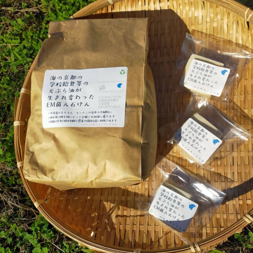 京丹後市の学校給食などの天ぷら油が生まれ変わったEM菌入りリサイクル石けん