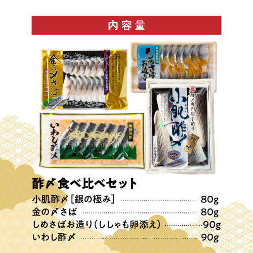 色々な酢〆をセットにしたので食べ比べをお楽しみください。