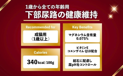 ストルバイト結石に配慮しマグネシウムを0.075%(標準値)に調整。さらに、メチオニン強化。(ビューティープロ キャット 成猫用比約20%アップ)