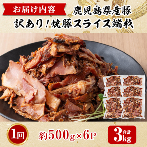 No.1258-B 訳あり!鹿児島県産 焼豚スライス端材(500g×6P) 国産 豚肉 お肉 モモ肉 もも 焼豚 チャーシュー トッピング おかず おつまみ 小分け 数量限定 【薩摩ファームブロスト】