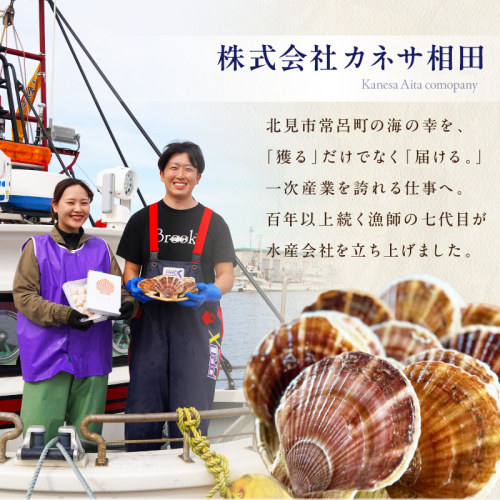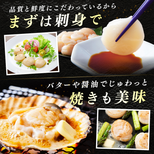 すべて手作業で選別されたホタテは、生食はもちろん、炙り焼き、バター焼き、パスタや炊き込みご飯にも最適。