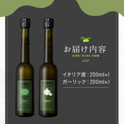 No.005-B <イタリア産&ガーリックオイル>オリーブオイルセット(200ml×2本) 日置市 特産品 調味料 油 エキストラバージン オリーブ セット ガーリック【鹿児島オリーブ】