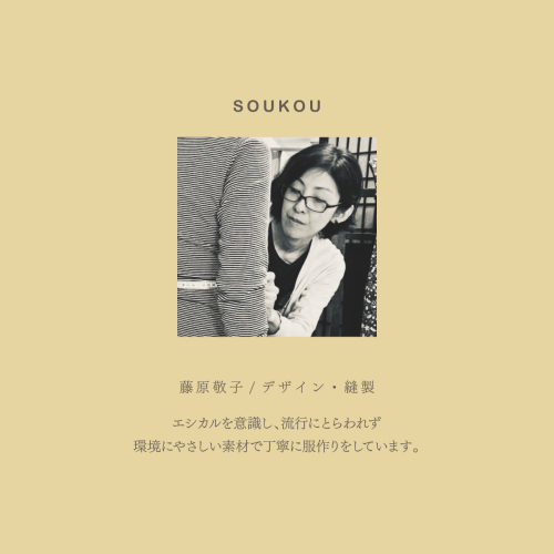 人と環境に優しい服をコンセプトに、身に着ける人への影響はもちろん、綿花の栽培における社会問題に対しても労働者と環境に配慮された=エシカル消費に繋がるモノづくりをしなければならないという思いからオーガニックコットンにこだわって素材選びを行い制作しています。