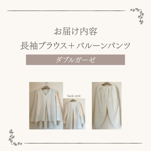 ・長袖ブラウス+バルーンパンツ(ダブルガーゼ使用)