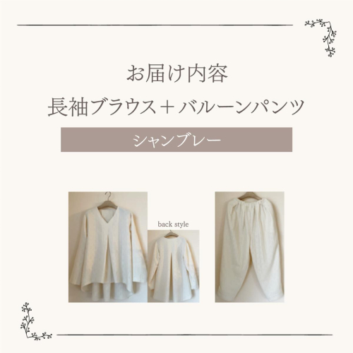 • ルームウエア(長袖ブラウス+バルーンパンツ【シャンブレー使用】)