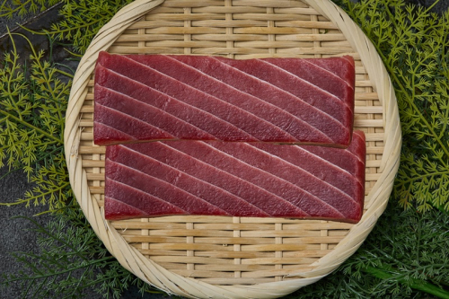 【説明】天然南マグロの赤身は、「赤いダイヤ」と称されるほど鮮やかな色合いが特徴です。筋が少なく締まった身質で、見た目も艶やかで高級感があります。味わいは甘みが強く、鉄分由来の渋みが少ないため、万人に好まれるバランスの良い風味を持っています。また、冷凍すると味が濃くなる特性があり、刺身や寿司に適しているほか、洋風料理にも応用可能です。本マグロとは異なり、さっぱりとした味わいが魅力で、幅広い料理に活用されています。